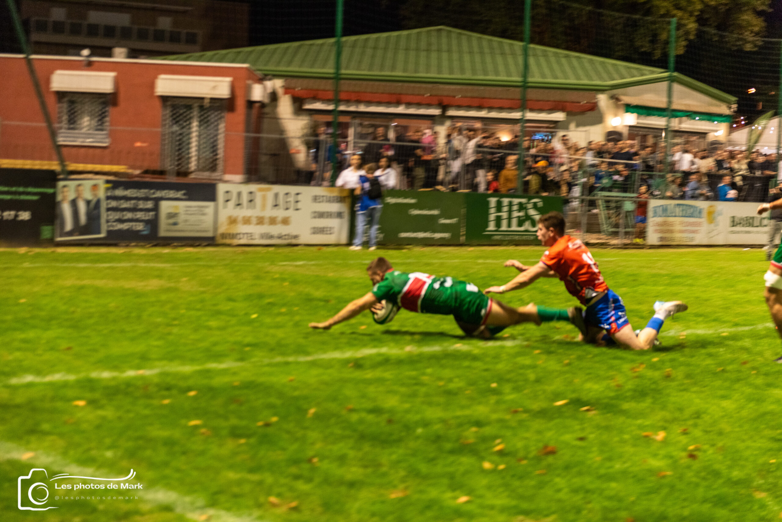 Puis c’est Baptiste Phalip, en puissance, qui franchit la ligne pour offrir le troisième essai avant la pause. Sabbia transforme à nouveau : 22–0 à la mi-temps !